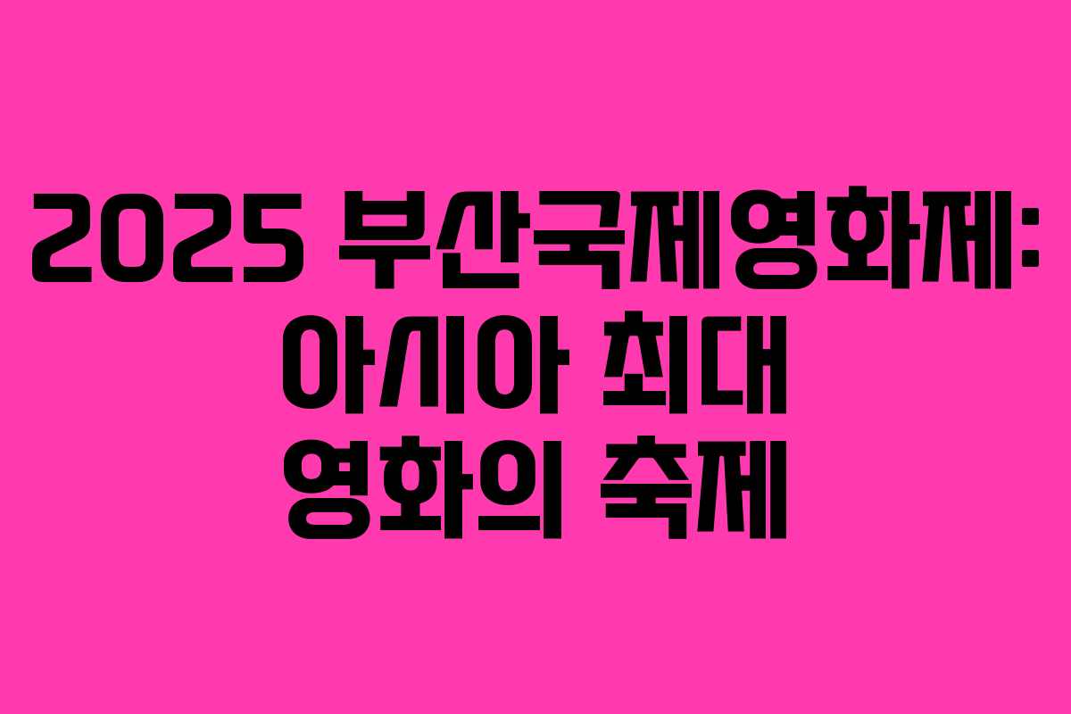부산국제영화제는 아시아 최대 규모의 국제 영화제로, 2025년에도 많은 영화 팬들을 맞이할 준비를 하고 있습니다. 이번 영화제는 다양한 프로그램과 기대작들로 가득 차 있어, 영화 애호가들에게 특별한 경험을 선사할 것입니다.