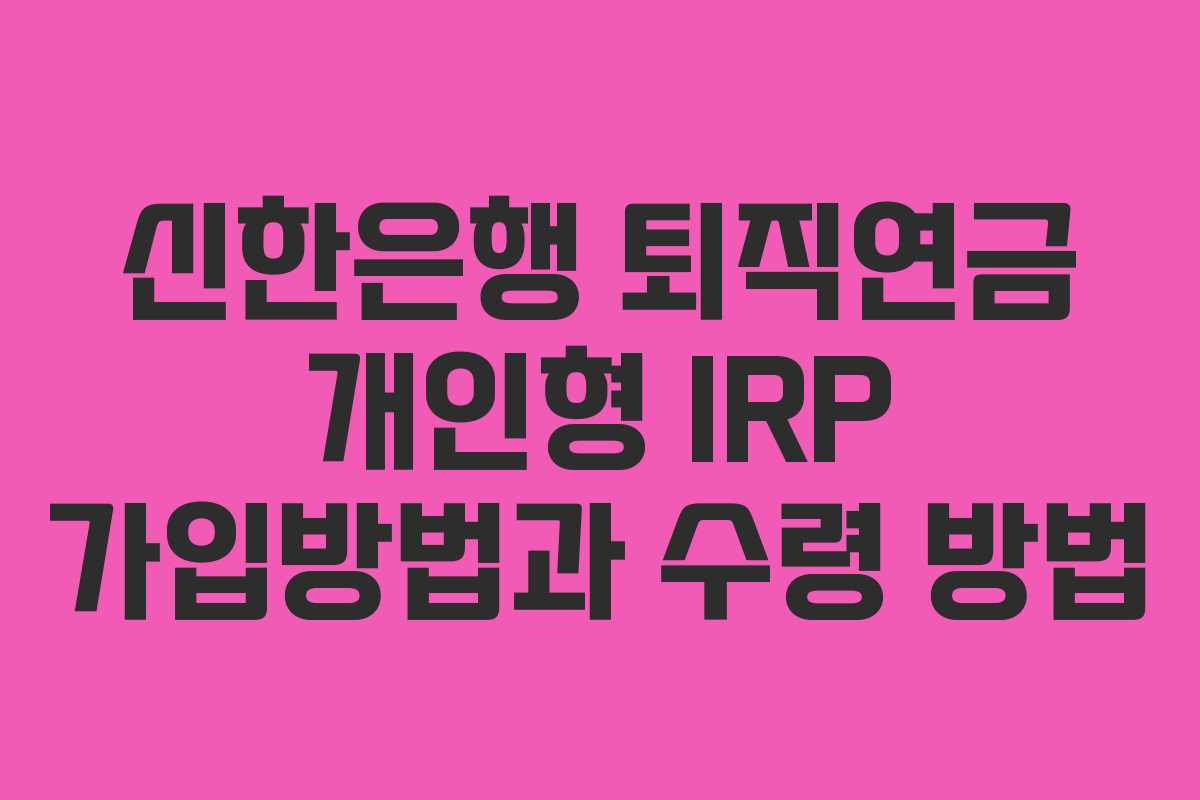 신한은행 퇴직연금 개인형 IRP 가입 방법
