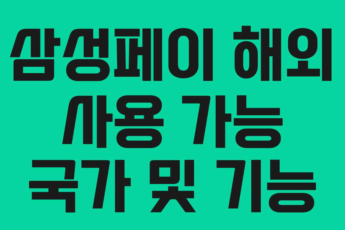 삼성페이는 갤럭시 스마트폰에서 매우 유용한 결제 수단으로 자리잡았습니다. 특히 해외여행 시 삼성페이를 통해 손쉽게 결제할 수 있는 방법에 대한 관심이 높아지고 있습니다. 이번 글에서는 삼성페이가 어떤 나라에서 사용 가능한지와 관련된 정보를 상세히 다루어 보겠습니다.