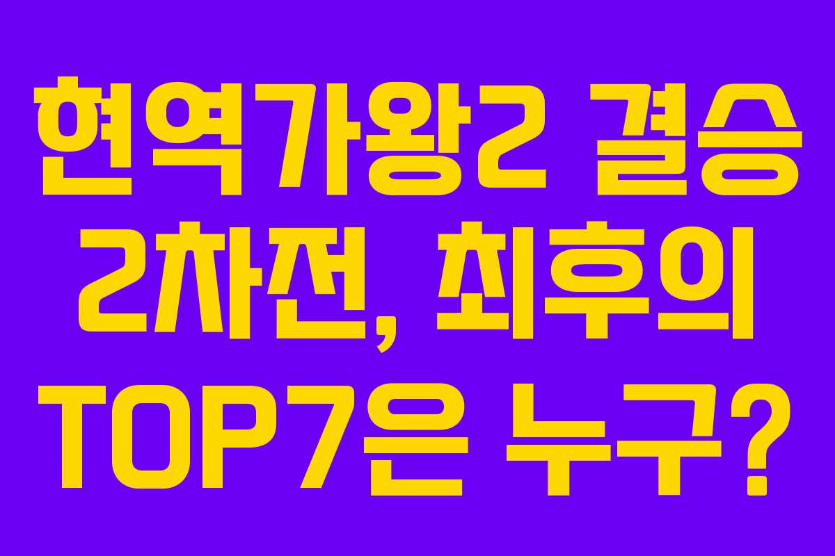현역가왕2의 결승 2차전은 128일간의 치열한 대결을 통해 최종 7인을 가리는 마지막 라운드입니다. 3,072시간의 여정 끝에 선택받은 10명의 가수 중 단 7명만이 한일가왕전에 출전할 수 있는 기회를 얻게 됩니다. 시청자들의 문자 투표가 최종 결과에 큰 영향을 미치므로, 많은 참여가 필요합니다.