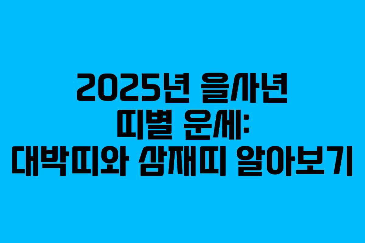 2025년 을사년 띠별 운세: 대박띠와 삼재띠 알아보기