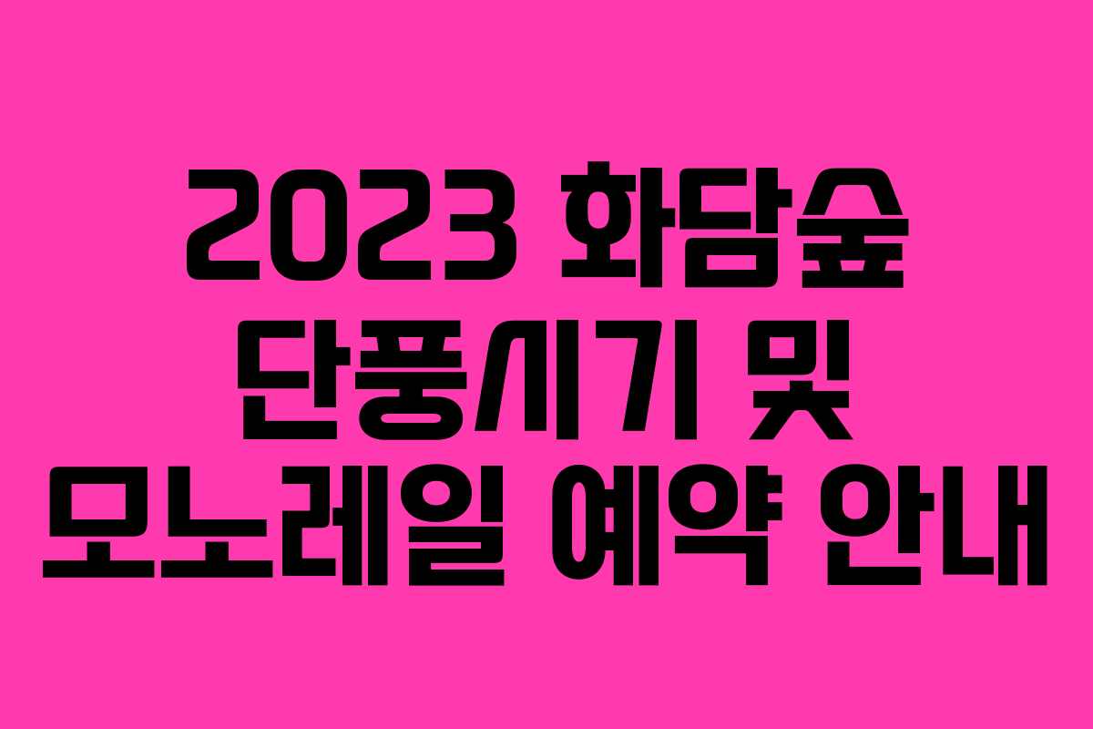 2023년 화담숲의 단풍 시즌과 모노레일 예약 방법에 대해 알아보겠습니다. 아름다운 단풍을 만끽할 수 있는 화담숲의 방문 계획을 세워보세요.