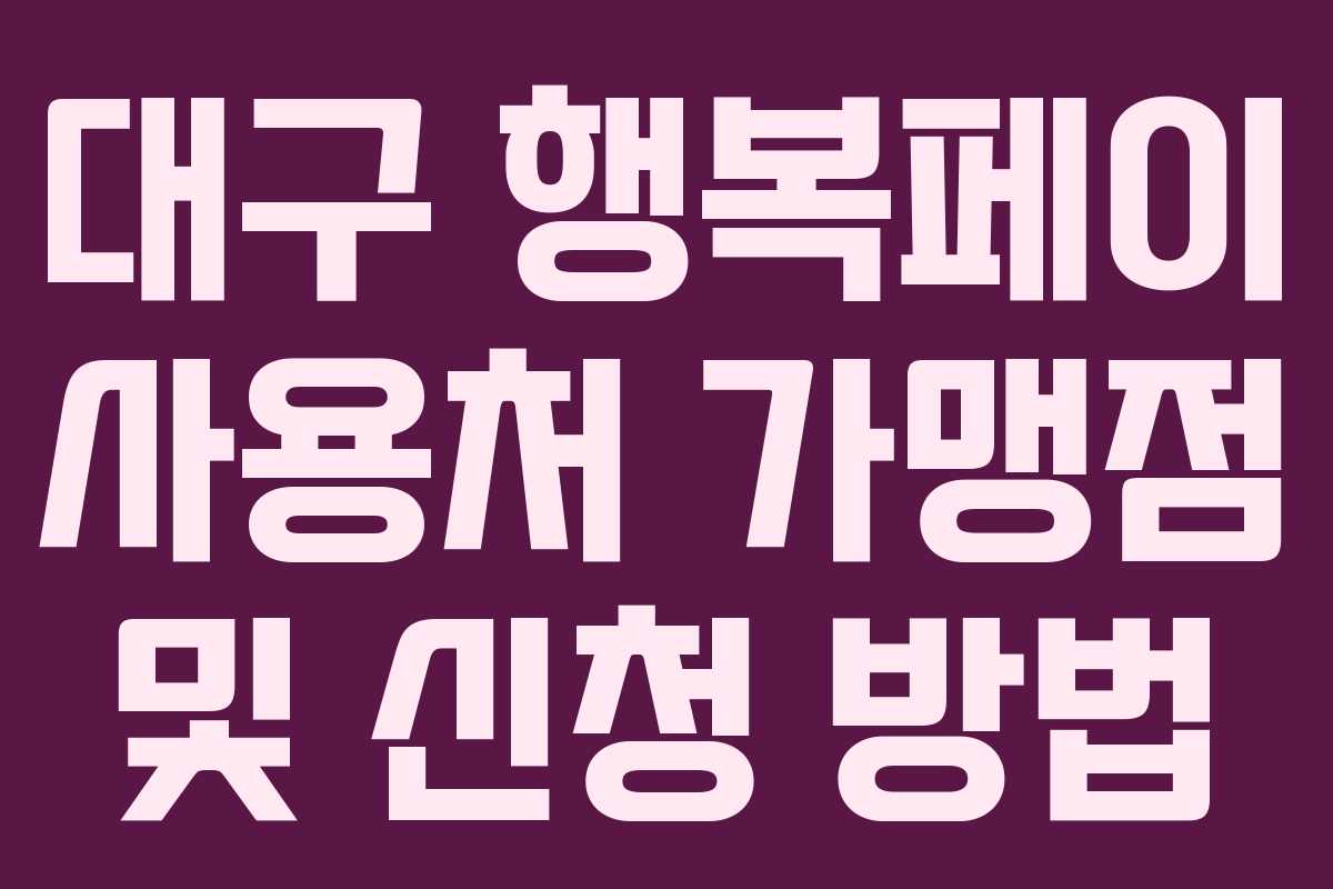 대구 행복페이는 대구광역시에서 운영하는 지역화폐로, 다양한 가맹점에서 이용할 수 있습니다. 본 글에서는 대구 행복페이의 사용처, 신청 방법 및 충전 방법에 대한 정보를 정리하였습니다.