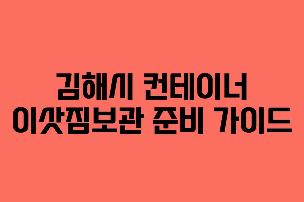 김해시 컨테이너 이삿짐보관 준비 가이드