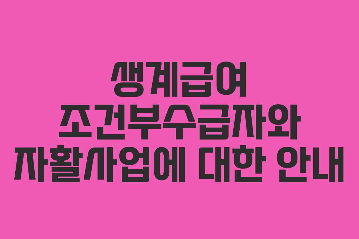 조건부수급자는 자활사업에 참여하는 조건으로 생계급여를 받는 기초생활수급자를 뜻합니다. 이들은 근로능력이 있는 사람들로, 자활사업 참여를 통해 자립 의지를 보여야 자격을 유지할 수 있습니다.