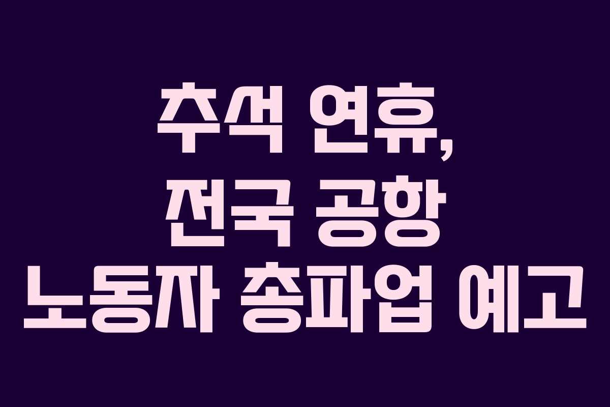 다가오는 추석 연휴를 앞두고, 전국 15개 공항의 노동자들이 9월 19일부터 총파업에 돌입한다고 발표했습니다. 이번 파업은 인천공항, 김포공항, 김해공항, 제주공항 등 주요 공항이 모두 포함되어 귀성객과 여행객들에게 큰 영향을 미칠 것으로 예상됩니다.