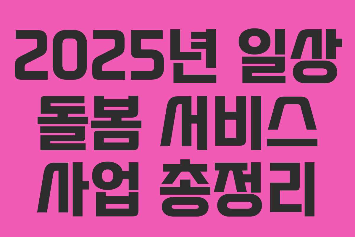 2025년 대한민국 정부는 일상 돌봄 서비스 사업을 통해 도움이 필요한 국민들에게 다양한 지원을 제공합니다. 이 사업은 특히 고령자, 장애인, 한부모 가정 등을 대상으로 하여 일상생활의 편의를 높이고 삶의 질을 향상시키는 것을 목표로 합니다.