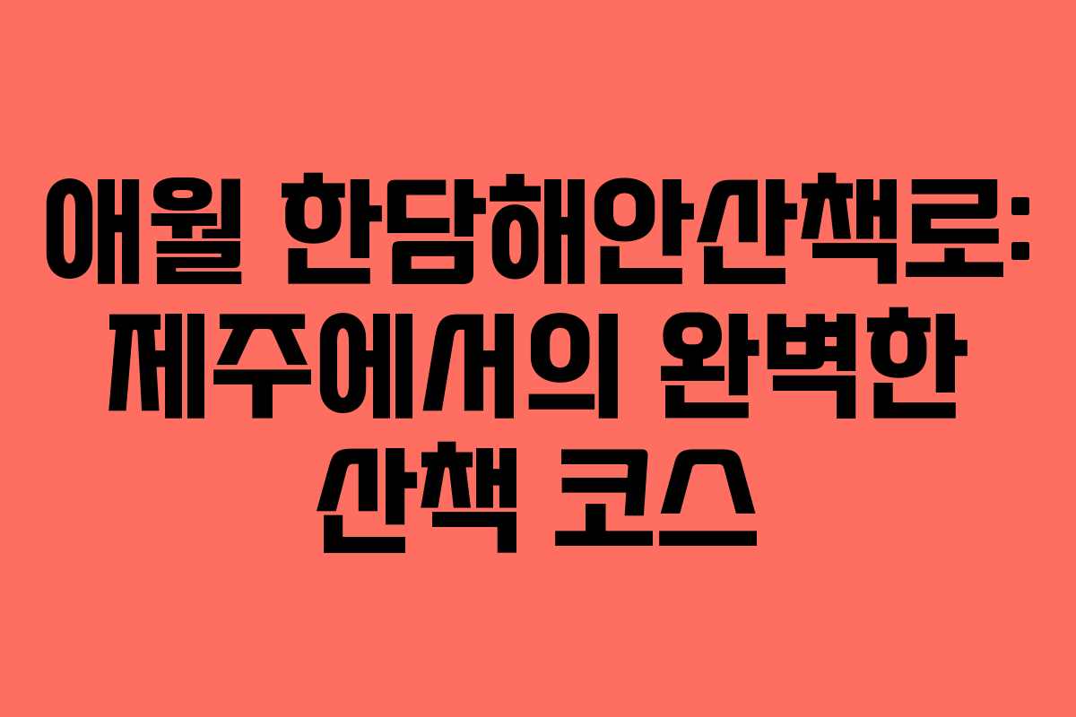 제주도는 아름다운 자연 경관과 함께 걷기 좋은 장소들이 많이 있습니다. 그 중에서도 애월 한담해안산책로는 특히 인기 있는 코스로, 친구들과의 여행에서 첫 번째로 찾기 좋은 명소입니다.