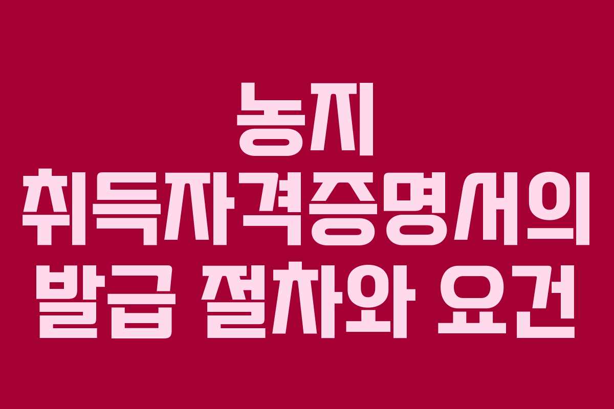 농지 취득자격증명서를 발급받기 위해서는 다음과 같은 요건을 충족해야 합니다.