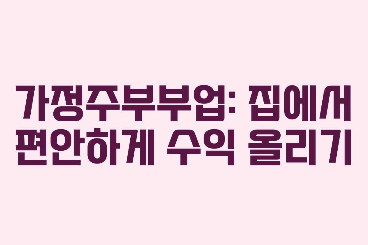 최근 많은 주부들이 가정에서 할 수 있는 부업을 찾아 나서고 있습니다. 특히 집에서 컴퓨터로 작업할 수 있는 부업은 시간과 장소에 구애받지 않아 인기를 끌고 있습니다. 이 글에서는 가정주부부업의 장점, 시작 방법, 그리고 주의사항에 대해 알아보겠습니다.