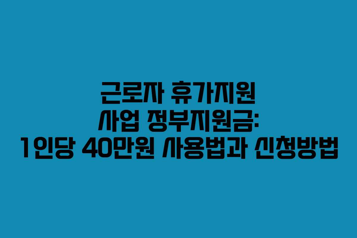 근로자 휴가지원 사업은 국내 여행을 지원하기 위해 정부와 기업이 협력하여 운영하는 프로그램입니다. 이 프로그램을 통해 누구나 소득이나 나이에 관계없이 1인당 40만원의 지원금을 받을 수 있습니다.