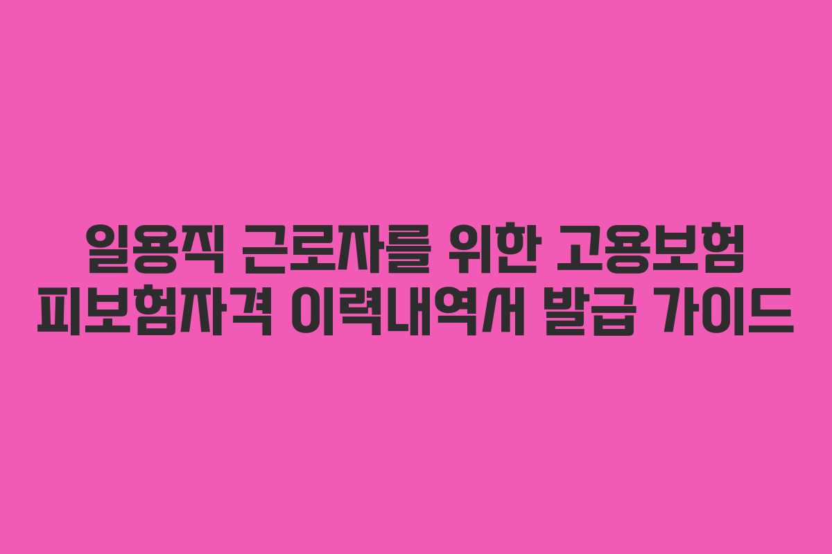 고용보험 피보험자격 이력내역서는 일용직 근로자에게 필수적인 서류로, 실업급여 신청, 대출, 경력 증명 등에서 중요한 역할을 합니다. 하지만 일용직의 특성상 다양한 고용 형태로 인해 발급 과정에서 어려움이 있을 수 있습니다. 이 글에서는 일용직 근로자가 이력내역서를 쉽게 발급받고 활용하는 방법을 상세히 안내합니다.