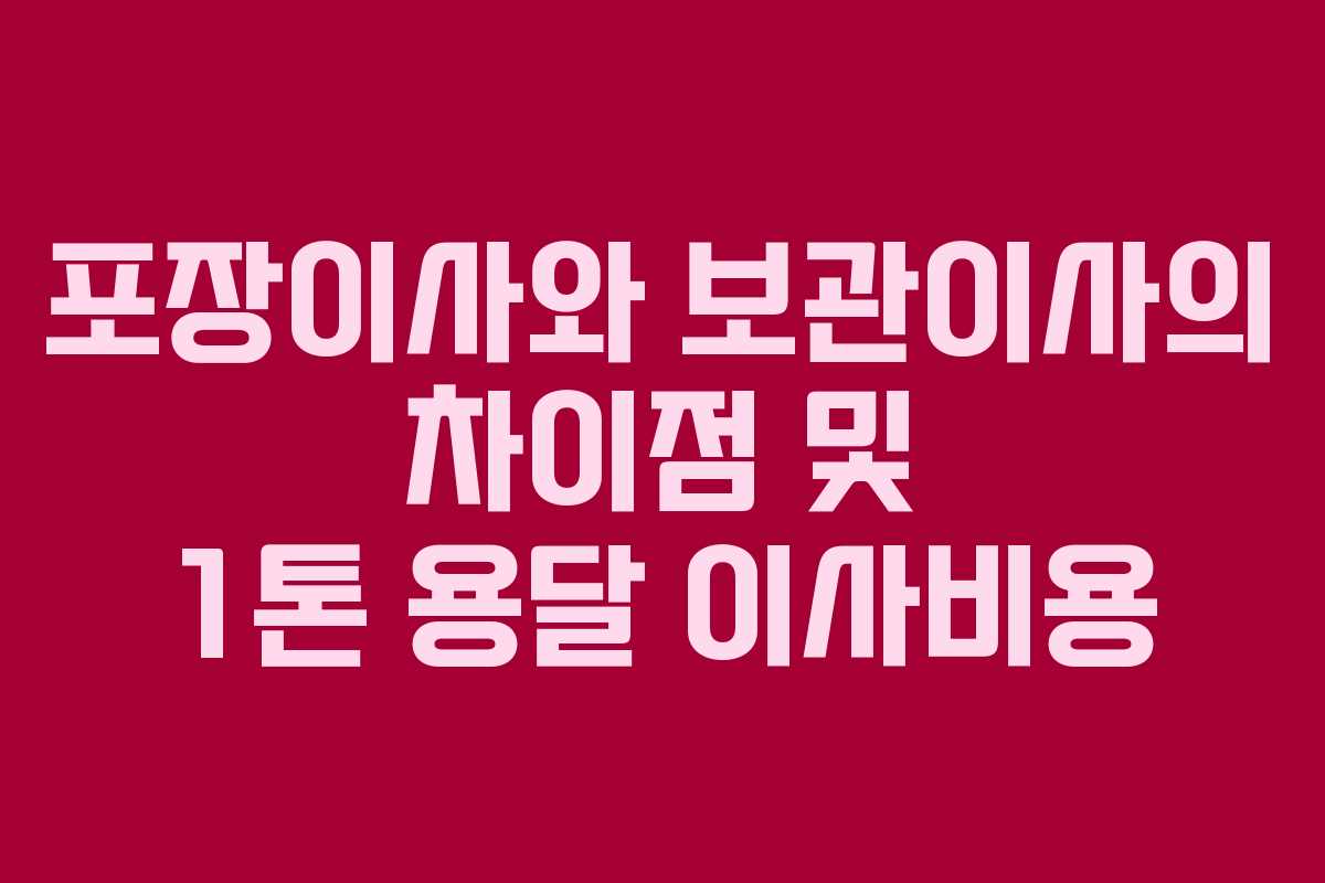 이사는 다양한 형태로 나뉘며, 그 중에서도 포장이사와 보관이사는 많은 이사 고객들이 주목하는 서비스입니다. 각각의 서비스는 이사 과정에서 제공하는 내용과 비용 측면에서 차이가 있습니다. 이번 글에서는 포장이사와 보관이사의 차이점, 및 1톤 용달 이사비용에 대해 자세히 알아보겠습니다.