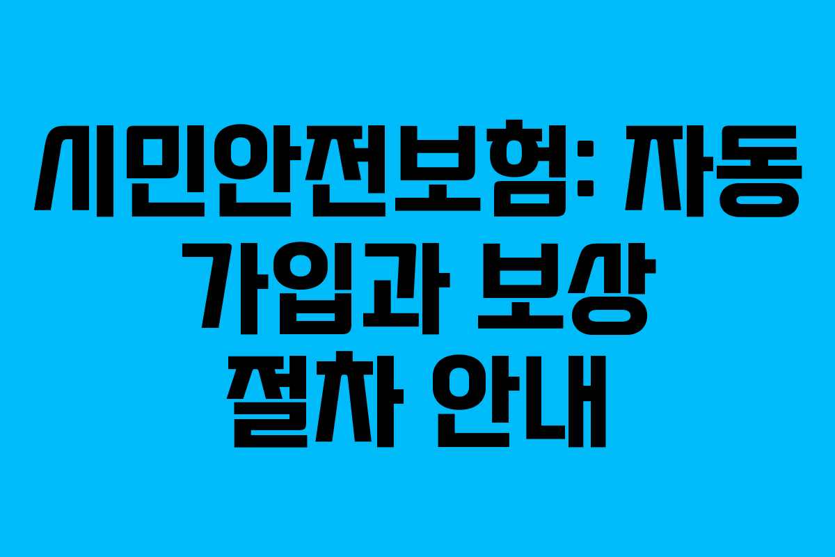 시민안전보험은 재난이나 사고로 인한 생명 및 신체 피해를 보상하기 위해 각 지자체가 자율적으로 운영하는 보험입니다. 이 보험은 해당 지역 주민이라면 별도의 신청 절차 없이 자동으로 가입되며, 이제 그 내용과 보상 절차에 대해 자세히 알아보겠습니다.