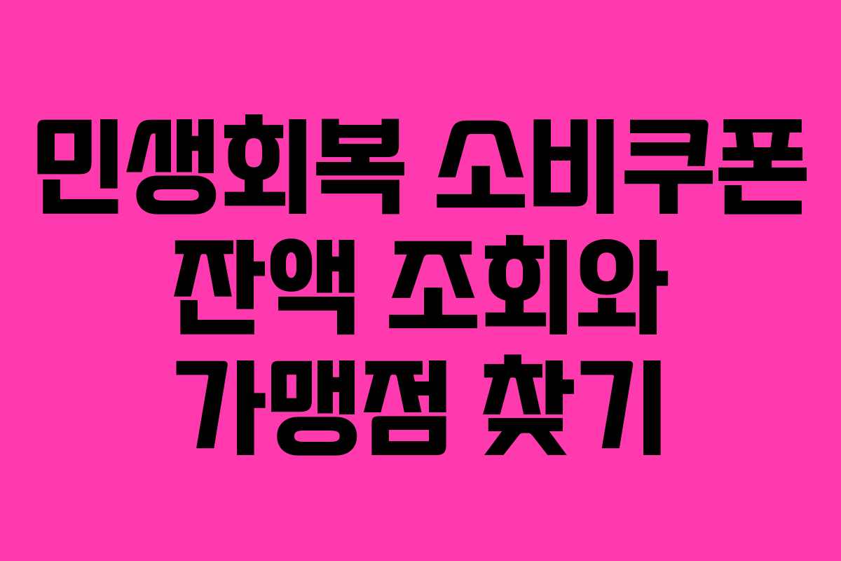 민생회복 소비쿠폰은 소비자에게 직접 지원되는 중요한 정부 정책 중 하나입니다. 이 쿠폰을 통해 소비자들은 필요한 곳에서 손쉽게 지원금을 사용할 수 있습니다. 이번 글에서는 소비쿠폰의 잔액 조회 방법과 가맹점을 찾는 방법에 대해 알아보겠습니다.