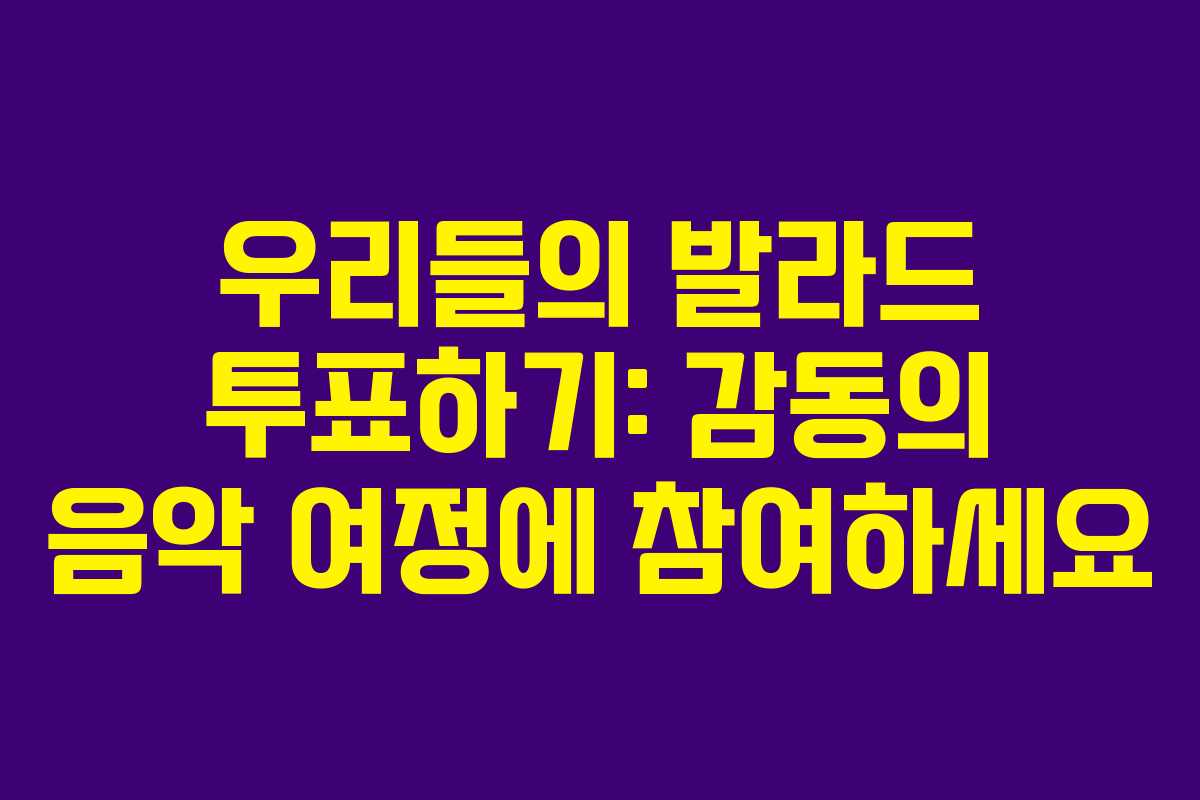 ‘우리들의 발라드’는 마음을 울리는 이야기와 음악이 어우러지는 무대입니다. 시청자의 투표는 이 과정에서 중요한 역할을 합니다. 진심을 담은 목소리에 공감했다면, 그 감동을 ‘투표’라는 방식으로 표현해 보세요. 새로운 음악의 주인공은 바로 여러분의 한 표로 결정됩니다.