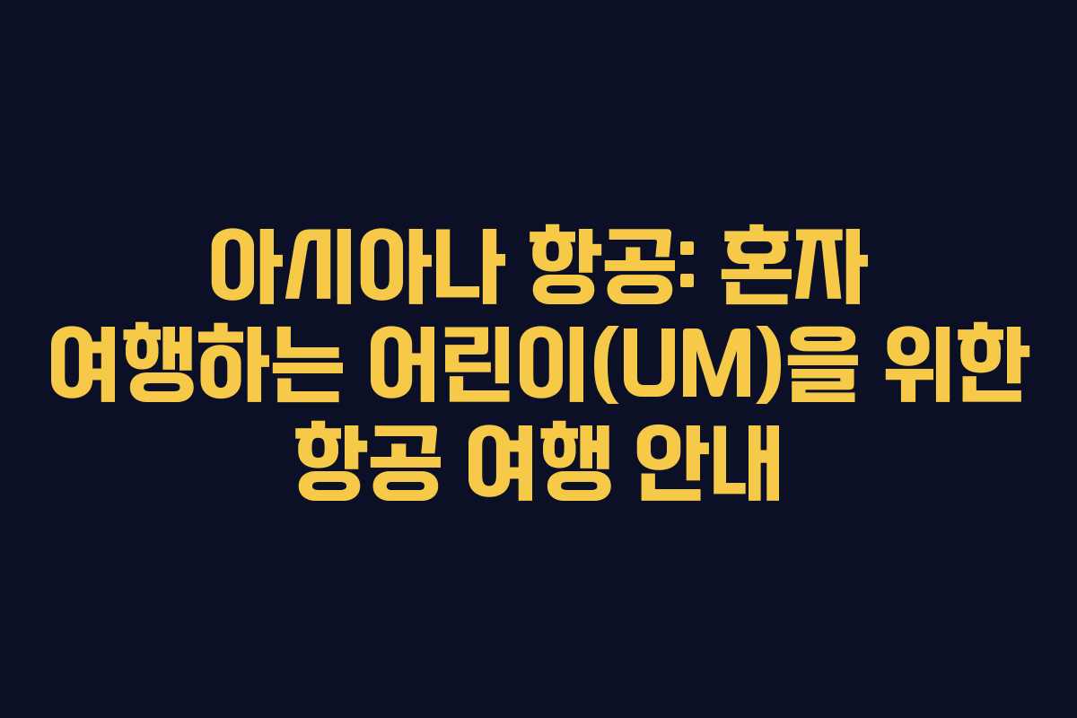 아시아나 항공을 통해 혼자 여행하는 어린이(UM)를 위한 항공 여행 안내 정보를 제공하겠습니다. 어린이들이 안전하고 즐거운 여행을 할 수 있도록 필요한 정보와 주의사항을 정리했습니다.