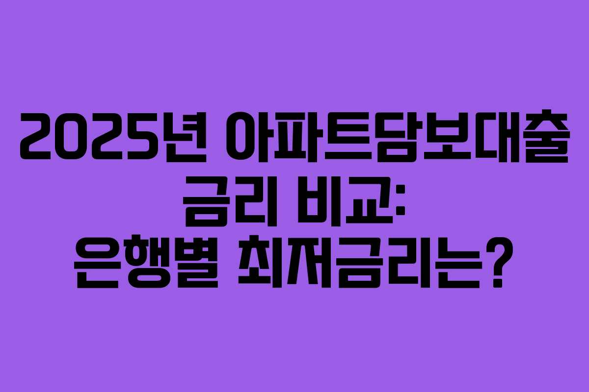 2025년 아파트담보대출 금리는 많은 사람들에게 중요한 주제입니다. 경제적 상황과 기준금리 변동에 따라 대출 금리가 달라지기 때문에, 최저금리를 찾고 본인에게 적합한 대출 상품을 선택하는 것이 필요합니다.