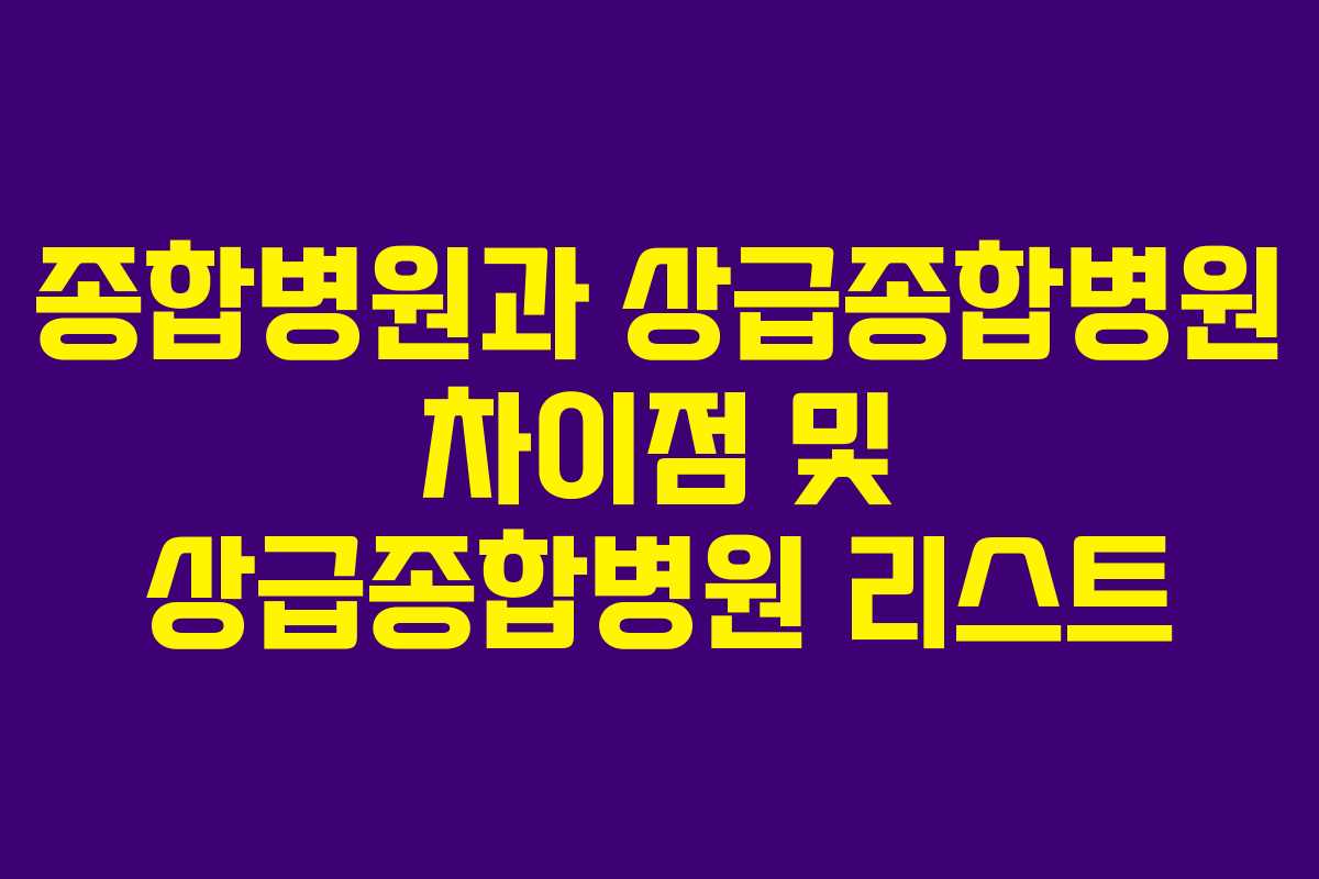 병원 시스템은 여러 가지 유형으로 나뉘어 있으며, 그 중에서도 종합병원과 상급종합병원은 중요한 역할을 합니다. 이 글에서는 두 병원의 차이점과 2025년 기준 상급종합병원 목록을 정리해 보겠습니다.