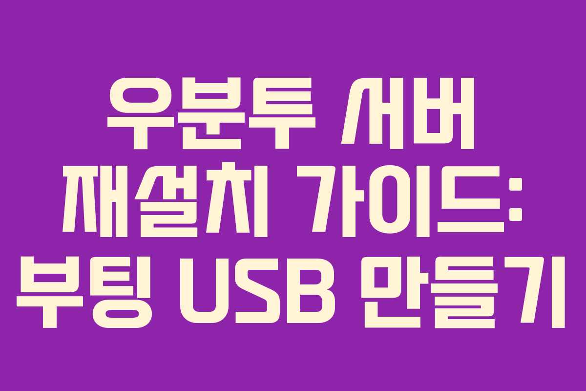 서버를 포맷하고 우분투를 재설치하는 과정은 시스템 정리와 보안 강화를 위한 중요한 절차입니다. 이번 글에서는 부팅 USB를 만드는 방법을 통해 우분투를 새롭게 설치하는 과정을 상세히 설명하겠습니다.