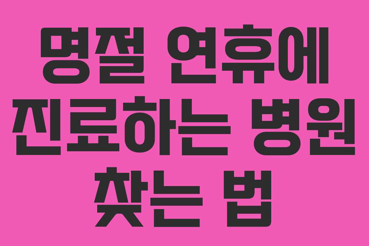 명절 연휴 동안 갑작스럽게 병원이 필요할 때, 어떻게 하면 쉽게 의료기관을 찾을 수 있는지 알아보겠습니다. 특히, 응급 상황에서 유용한 방법들을 소개합니다.