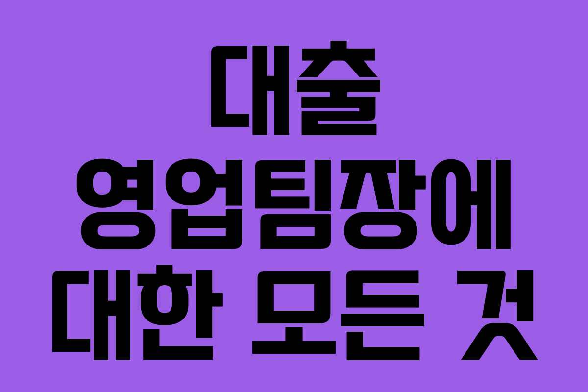 대출 영업팀장이 겪는 도전은 무엇인가요?