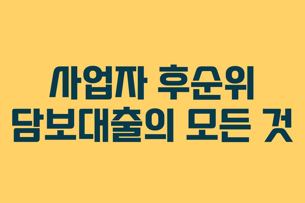 후순위 담보대출을 고려할 때는 여러 금융사의 조건을 비교하여 자신에게 가장 유리한 대출처를 선택하는 것이 중요합니다. 특히, 사업자의 조건에 맞춰 대출 가능성을 신중하게 검토해야 합니다.