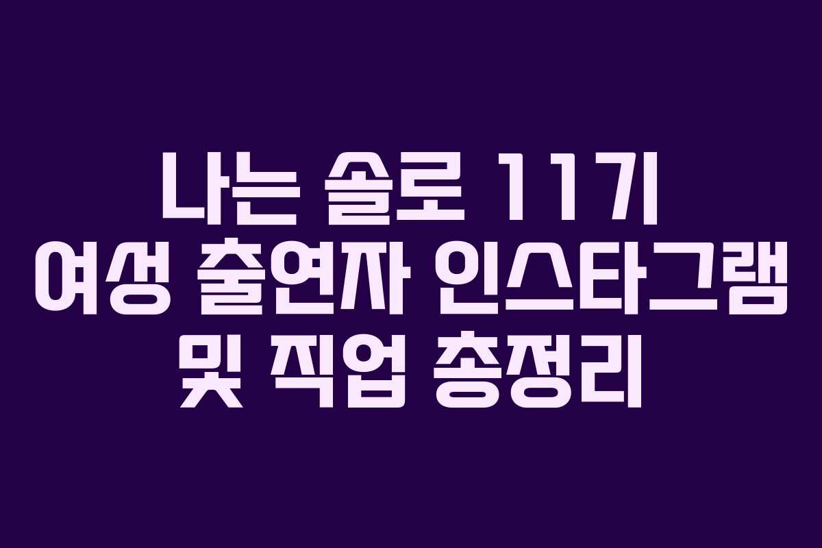 ‘나는 솔로’ 11기에서는 다양한 매력을 가진 여성 출연자들이 화제를 모으고 있습니다. 이 글에서는 각 출연자의 직업과 인스타그램 계정을 정리하여 소개하겠습니다.