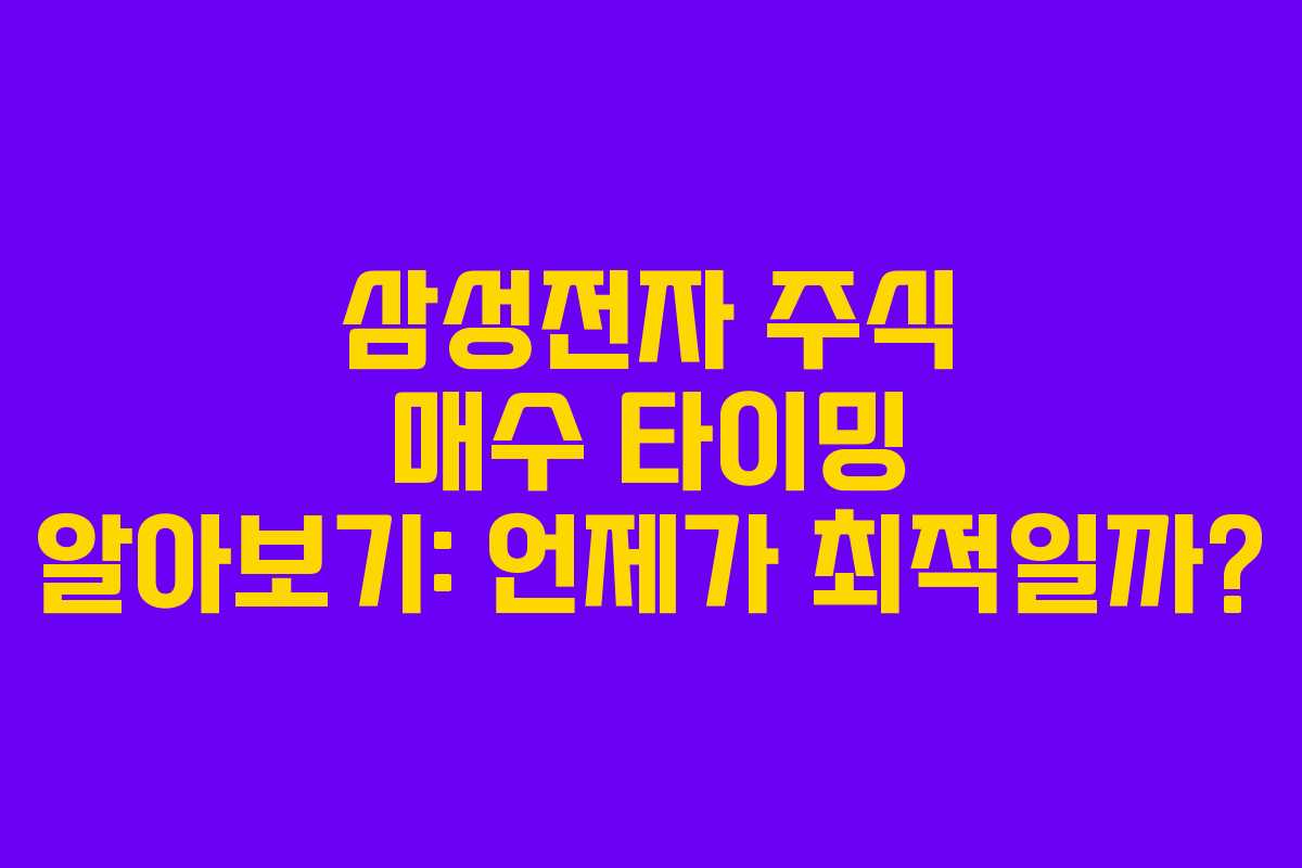 삼성전자 주식 매수 타이밍 알아보기: 언제가 최적일까?