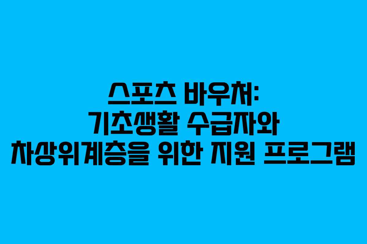 스포츠 바우처는 저소득층을 대상으로 스포츠 활동을 지원하는 프로그램으로, 월 9만 5천 원의 지원금으로 다양한 스포츠 강좌를 이용할 수 있습니다. 이 프로그램은 기초생활 수급자 및 차상위계층, 한부모 가족을 대상으로 하며, 문화누리카드와 중복 지원이 가능합니다.