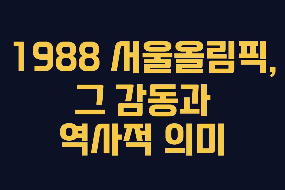 1988년 서울에서 개최된 올림픽은 많은 이들에게 잊지 못할 추억을 남겼습니다. 이 대회는 우리나라가 국제 사회에 나아가는 데 중요한 이정표가 되었으며, 지금도 많은 이들의 기억 속에 남아있습니다.