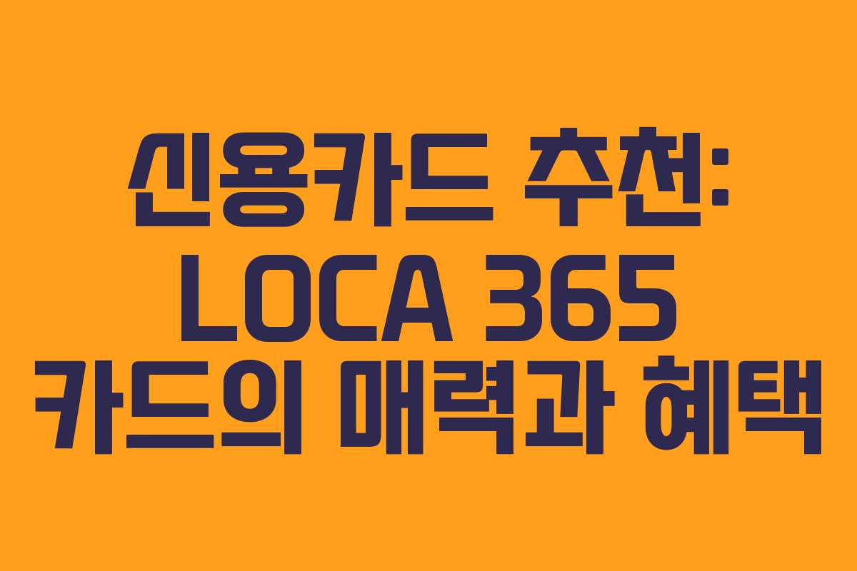 신용카드를 선택할 때는 다양한 할인 혜택과 사용 편의성이 중요한 요소입니다. 이번에 소개할 LOCA 365 카드는 특히 아파트 관리비를 비롯한 여러 항목에서 할인 혜택을 제공하여 많은 사람들에게 추천할 만한 카드입니다.