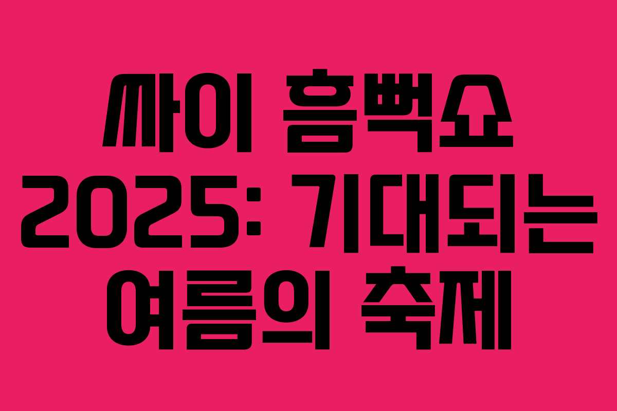 싸이 흠뻑쇼 2025: 기대되는 여름의 축제