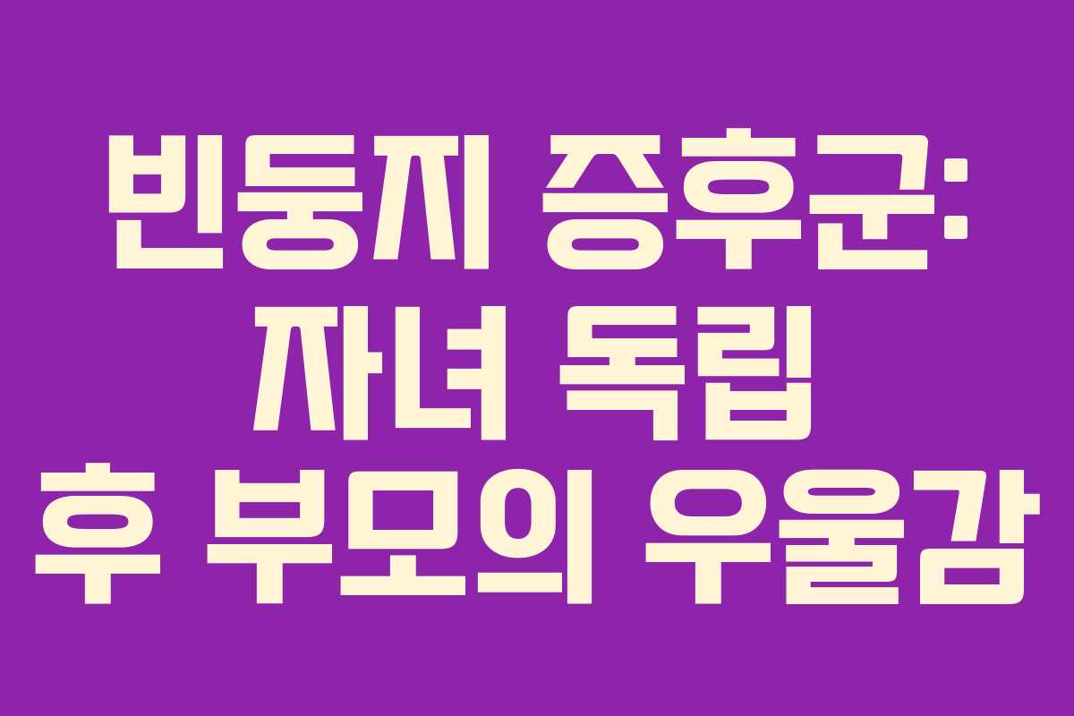 빈둥지 증후군은 자녀가 독립할 때 부모가 느끼는 심리적 불안감과 우울감으로, 함께해온 자녀가 눈앞에서 사라지면서 생기는 고립감이 주요 증상입니다. 이 증후군은 단순한 질병이 아니지만, 장기간 지속되거나 심각한 우울증으로 이어질 경우 적절한 대처가 필요합니다.
