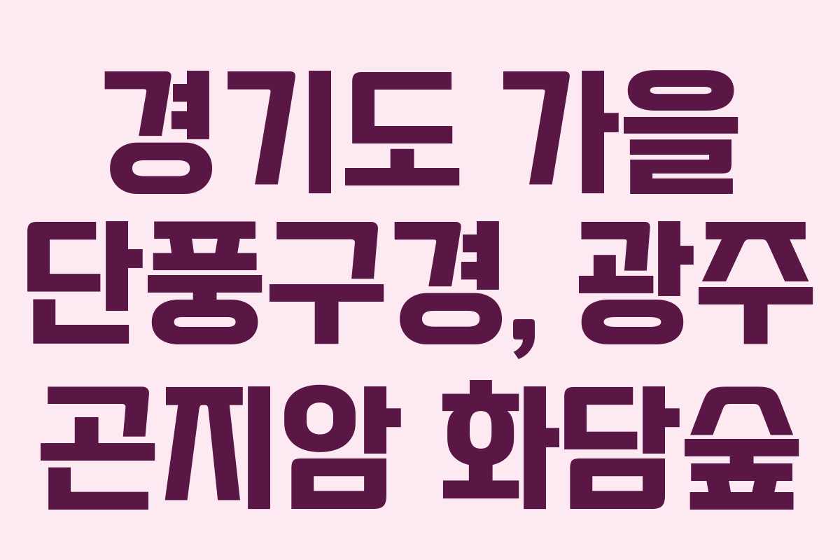 이번 가을, 경기도 광주 곤지암 화담숲에서 아름다운 단풍을 즐겨보세요. 가족과 함께하는 특별한 시간이 될 것입니다.