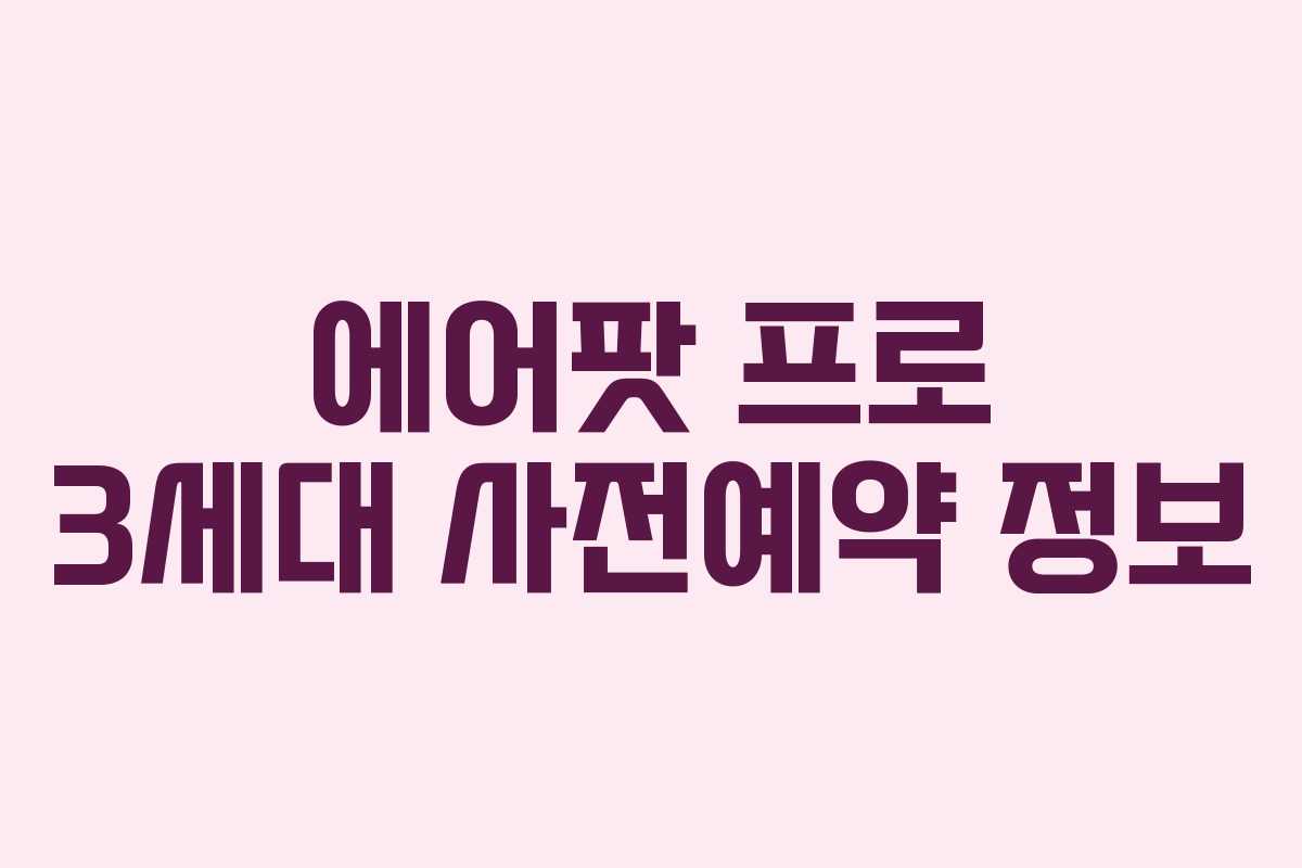 에어팟 프로 3세대는 애플의 프리미엄 무선 이어폰 라인업으로, 출시 전부터 많은 기대를 모으고 있습니다. 이번 글에서는 에어팟 프로 3세대의 출시일 및 사전예약 일정, 기능 개선 사항, 가격대와 사전예약 혜택까지 상세히 알아보겠습니다.