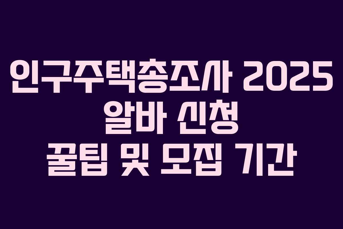 이 정보를 바탕으로 인구주택총조사 2025 알바 신청을 체계적으로 준비해 보세요. 성공적인 지원을 기원합니다!