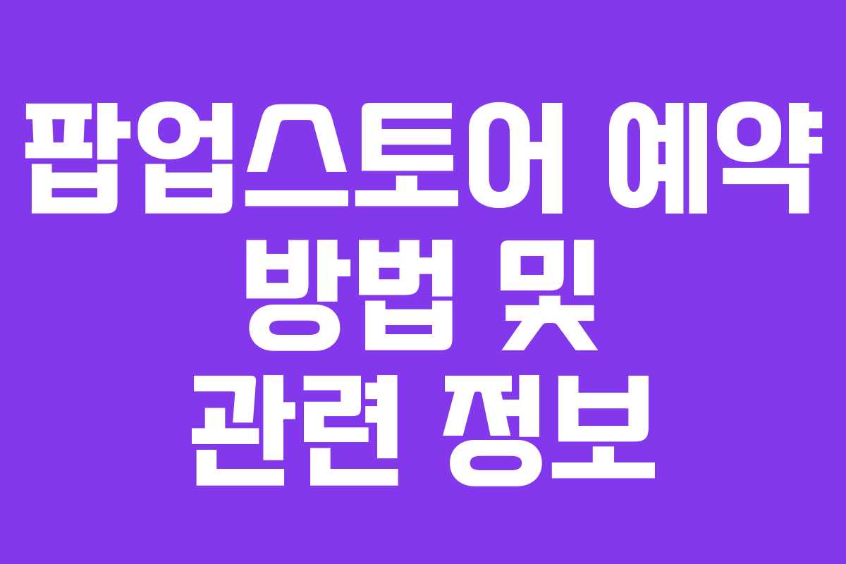 위 정보를 통해 다양한 팝업스토어의 예약 방법과 운영 정보를 확인하고, 원하는 팝업스토어를 놓치지 않도록 하시기 바랍니다.
