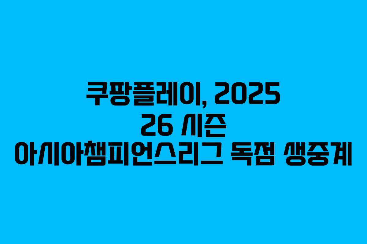 쿠팡플레이, 2025 26 시즌 아시아챔피언스리그 독점 생중계