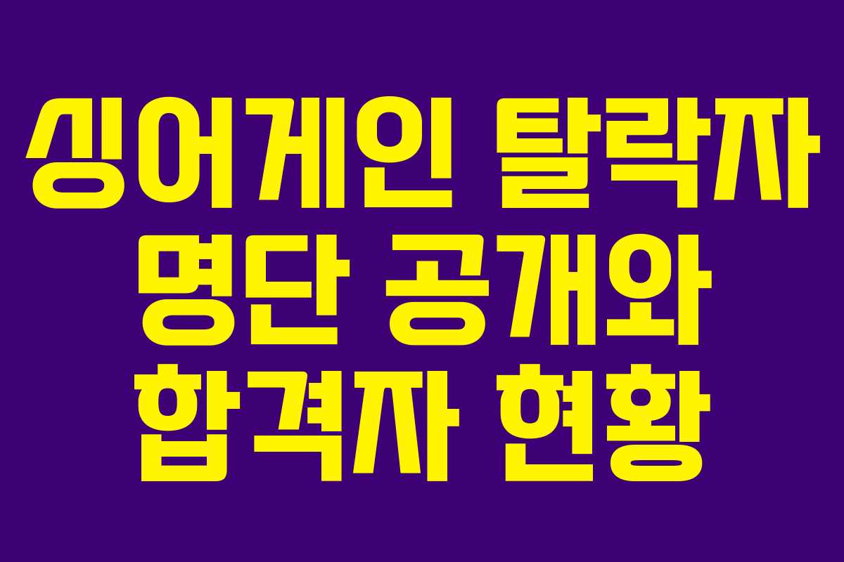 현재 진행 중인 TV 오디션 프로그램 싱어게인에서 탈락한 무명 가수들의 명단이 공개되었습니다. 이로 인해 많은 팬들과 시청자들이 그들의 노래를 찾아 듣고 싶어하는 분위기가 감돌고 있습니다. 본 포스트에서는 탈락한 가수들과 아직 이름이 공개되지 않은 합격자들에 대한 정보를 정리해보았습니다.