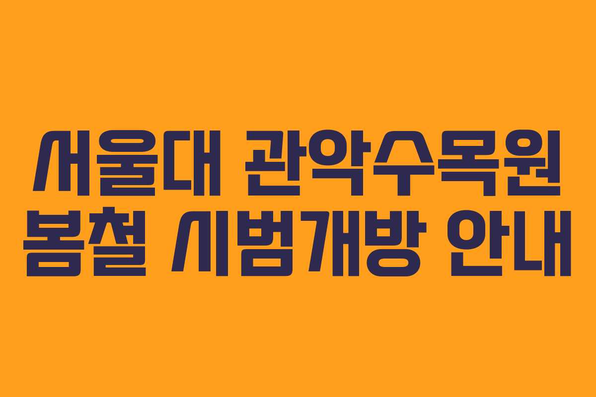 서울대 관악수목원이 2025년 봄철 동안 시범개방된다는 소식을 전해드립니다. 이 시기에 많은 분들이 자연의 아름다움을 만끽하고 힐링의 시간을 가져보시길 바랍니다.