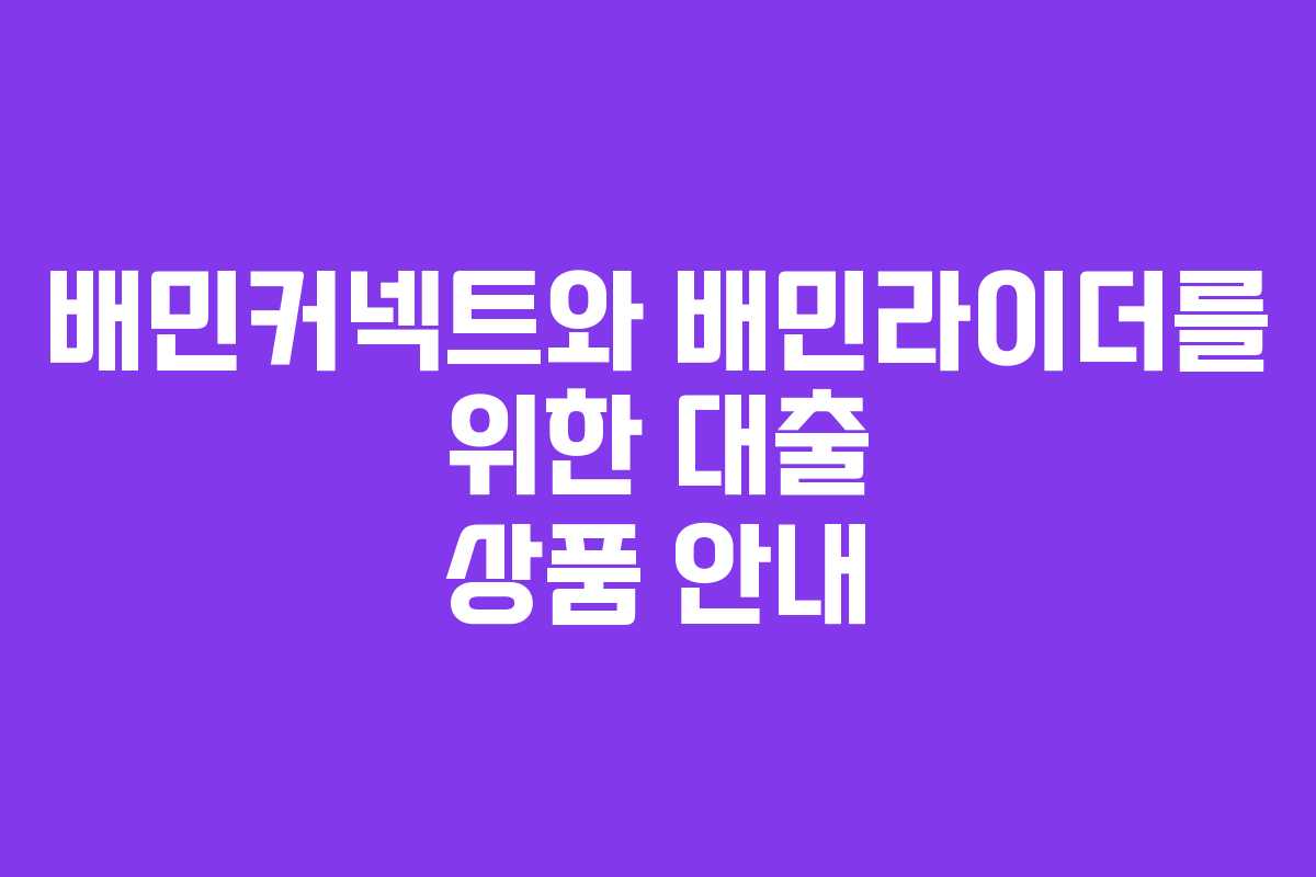 배민커넥트와 배민라이더를 위한 대출 상품 안내