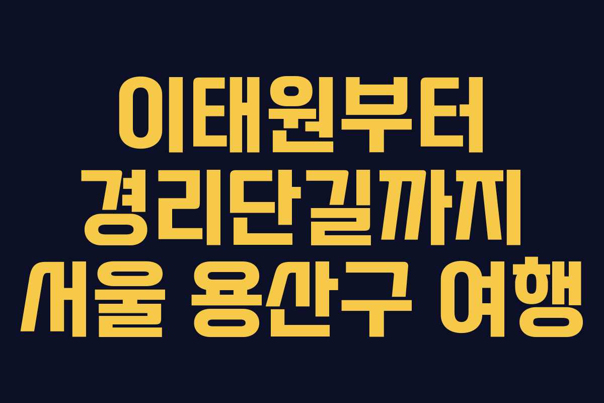 서울의 용산구는 다채로운 매력을 가진 여행지로 알려져 있습니다. 특히 이태원과 경리단길은 독특한 분위기와 다양한 먹거리, 볼거리가 가득해 많은 여행객들이 찾는 명소입니다. 이번 포스팅에서는 이태원에서 경리단길을 거쳐 용산가족공원까지의 여행 코스를 소개합니다.