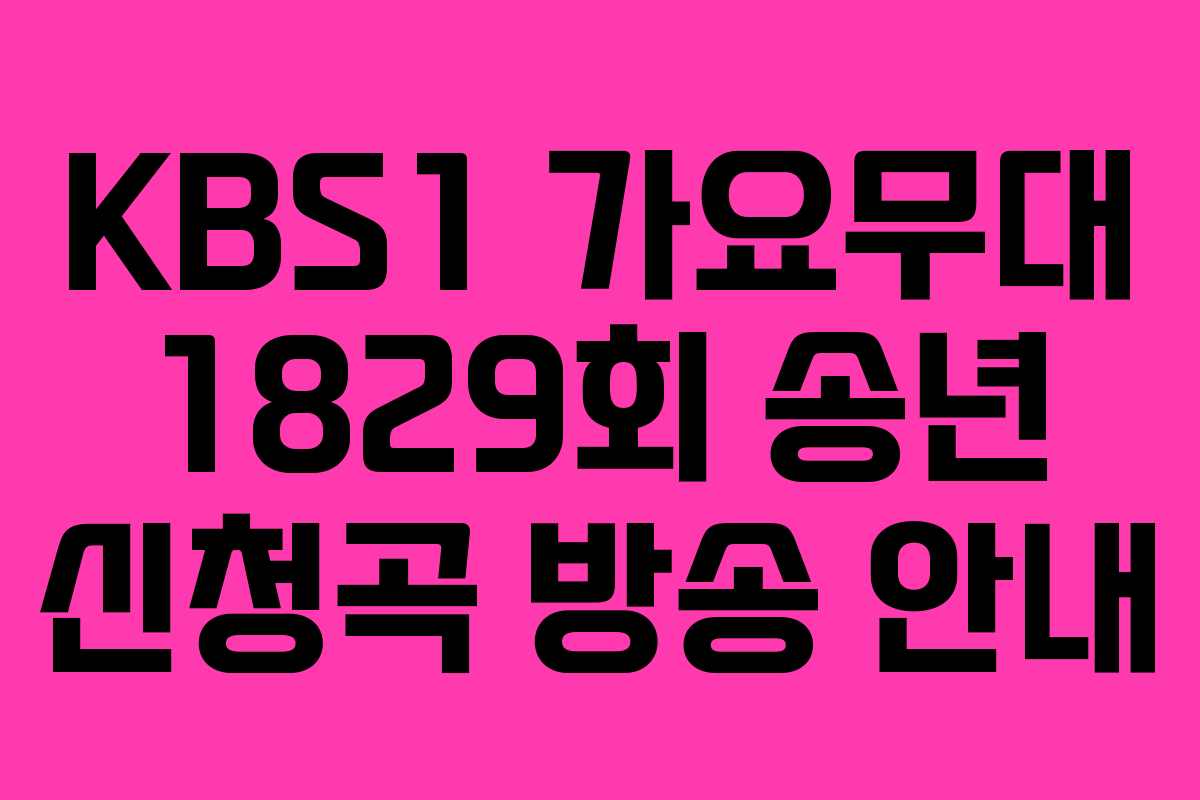 가요무대 1829회는 12월 25일 밤 10시에 방송됩니다. 이번 회차는 ‘송년 신청곡’ 편으로, 다양한 가수들이 출연하여 풍성한 무대를 선보일 예정입니다.