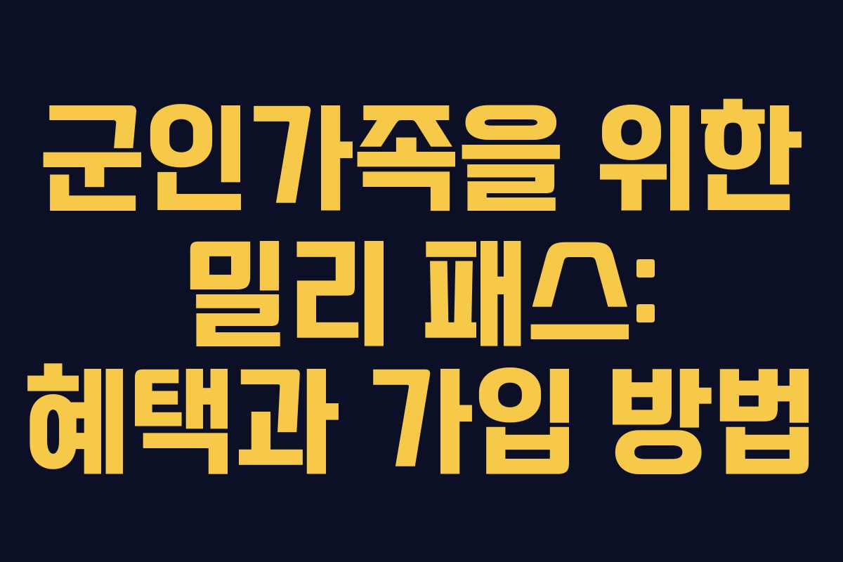 군인가족을 위한 다양한 혜택이 제공되며, 그 중 하나가 바로 “밀리 패스”입니다. 이 제도는 직업군인뿐만 아니라 일반 장병과 예비군까지도 많은 혜택을 누릴 수 있도록 돕습니다.