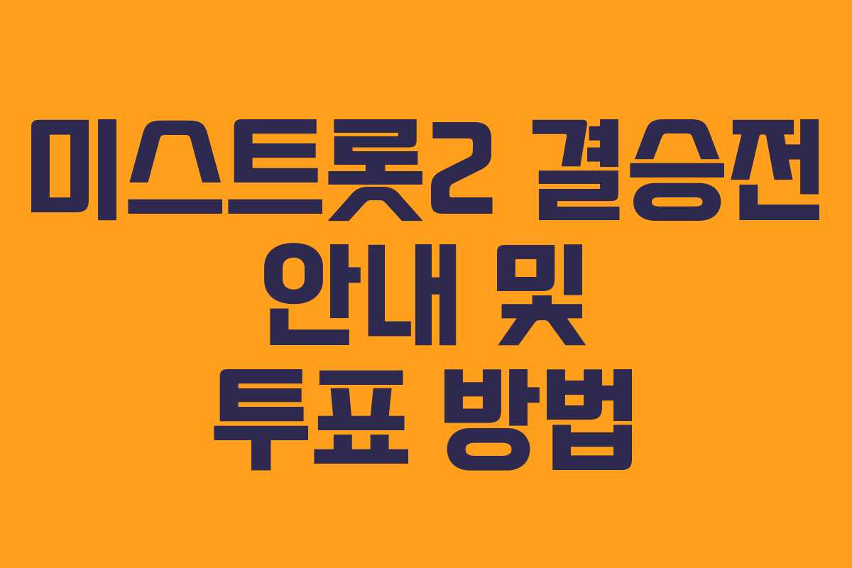 미스트롯2의 결승전이 드디어 다가왔습니다. 이번 결승전은 3월 4일 목요일 오후 10시에 TV조선에서 방영됩니다. 총 7명의 후보가 결승에 진출하였으며, 이들의 경연을 통해 최종 ‘진(眞)’이 결정될 예정입니다.
