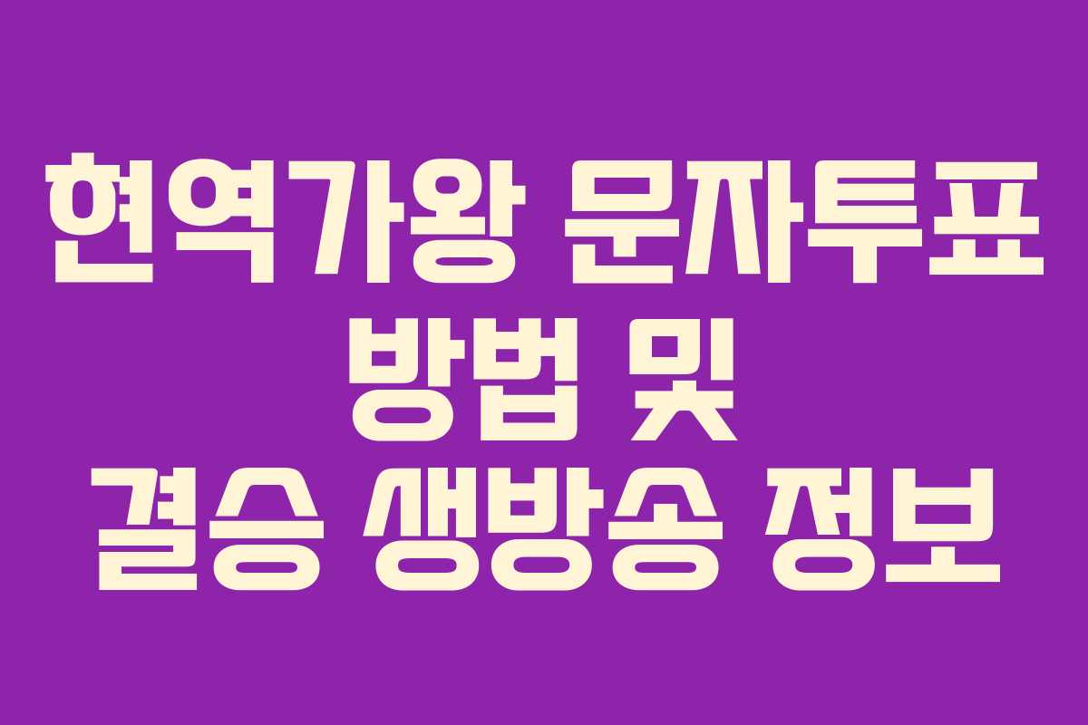 현역가왕의 결승전에서는 생방송 중 문자투표가 진행됩니다. 팬들은 응원하는 참가자의 번호를 입력하여 투표할 수 있습니다. 문자투표는 다음과 같은 절차로 진행됩니다: