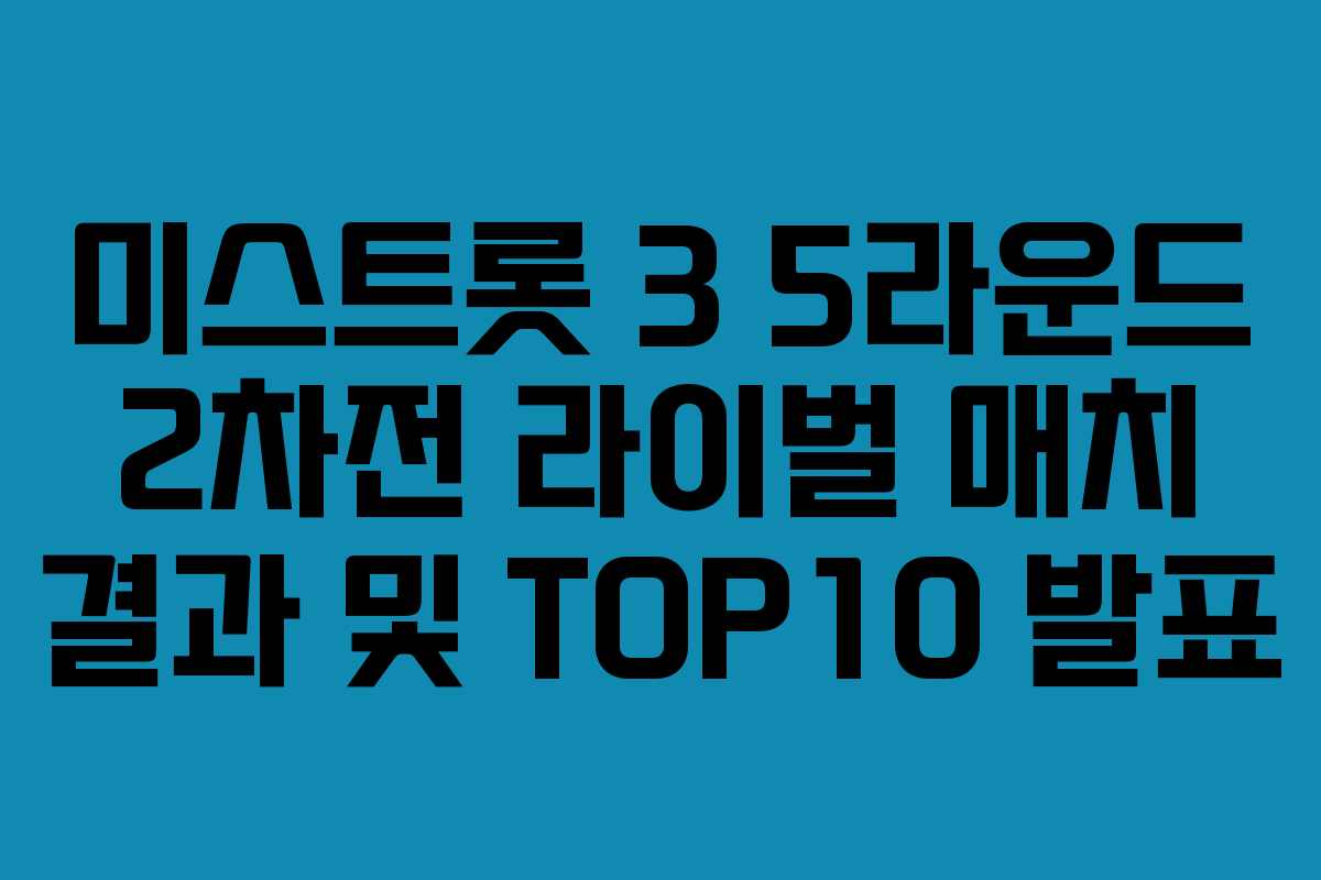 TV조선의 인기 오디션 프로그램 ‘미스트롯 3’에서 5라운드 2차전 라이벌 매치와 TOP10 결정전이 진행되었습니다. 이번 라운드는 참가자들의 실력과 인기를 가늠해 볼 수 있는 중요한 순간이었습니다.