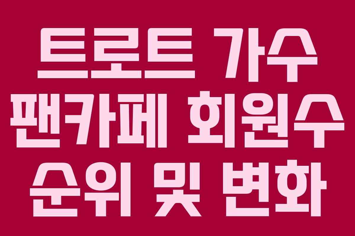 트로트 가수들의 팬카페 회원수는 그들의 인기를 가늠할 수 있는 중요한 지표입니다. 최근 업데이트된 회원수 정보를 통해 각 가수의 현황과 팬덤의 변화를 살펴보겠습니다.