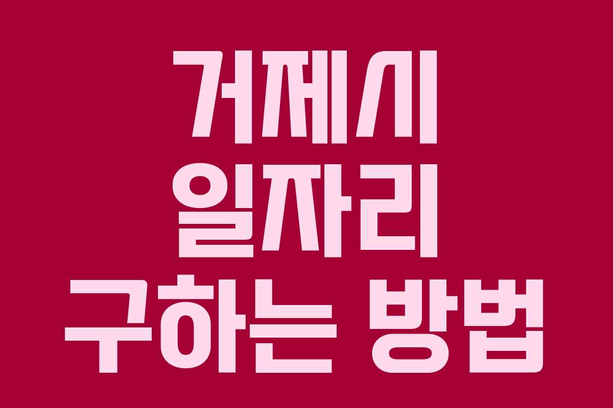 거제시 고용센터, 거제시청 홈페이지, 벼룩시장, 잡코리아 등의 사이트를 통해 다양한 일자리 정보를 확인할 수 있습니다.